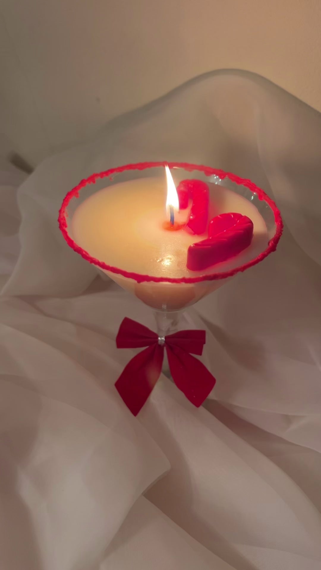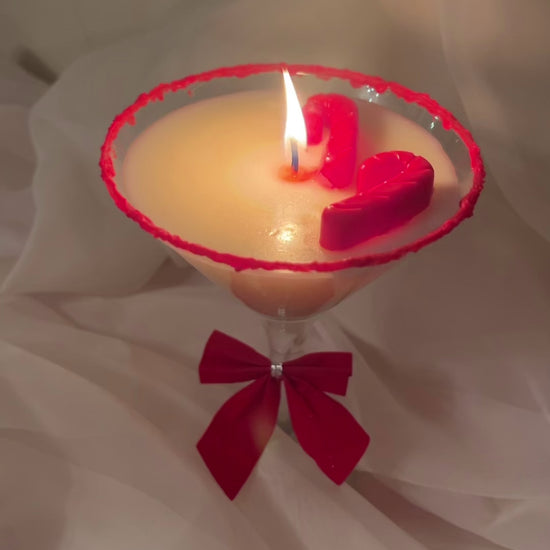 A gorgeous, festive twist on a classic martini, this Peppermintini Candle is the perfect addition to your home this festive season! This beautiful candle has a stunning red soy wax border to mimic sugar crystals and two classic red candy canes for an added festive touch.
